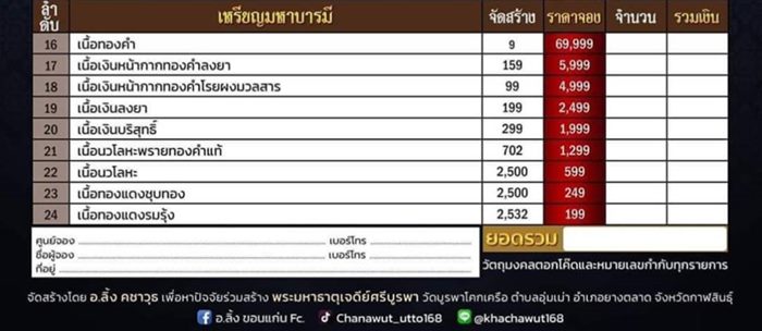 รายการที่ 23 เนื้อทองแดง ชุบทองคำแท้ จอง 250 มียอด 30