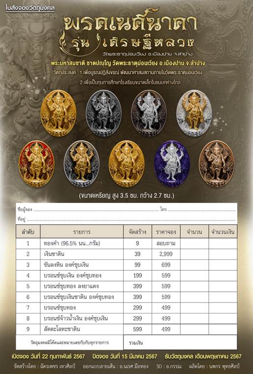 *** เปิดจอง// พรคเนศนาคา รุ่น เศรษฐีหลวง พระมหาสมชาติ ชาตปญฺโญ วัดพระธาตุม่อนเวียง อ.เมืองปาน จ.ลำปาง