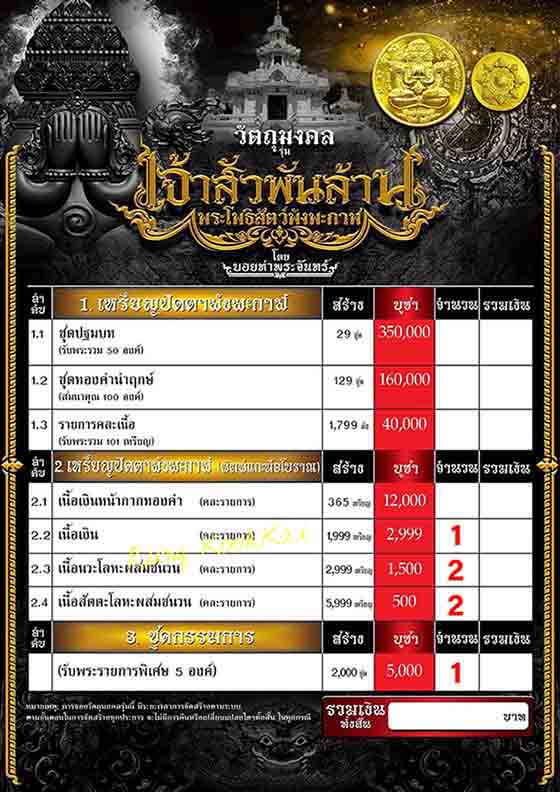 3. ชุดกรรมการ มียอด 1 (รับพระรายการพิเศษ 5 องค์) ชุดๆ ละ 10,500.-