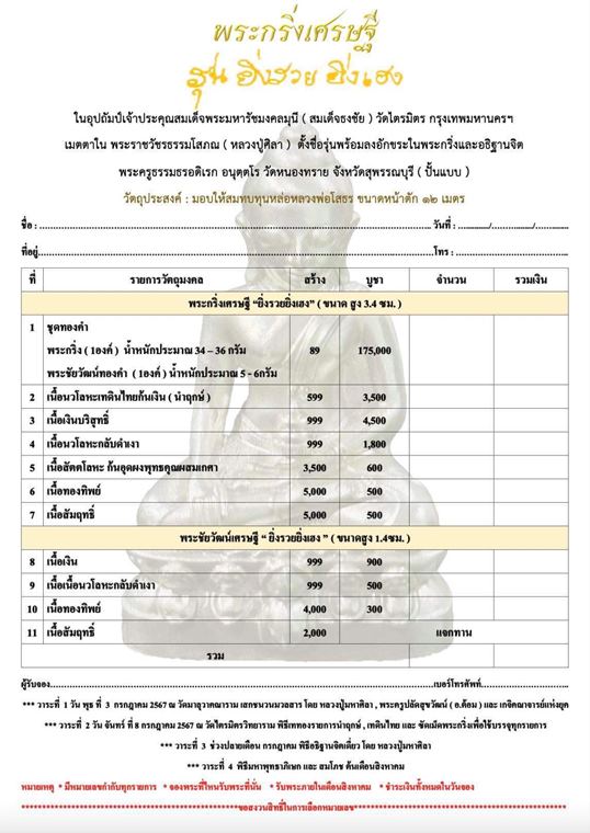 รายการ 1. ชุดทองคำ (รับพระ 2 องค์) ราคาจอง 175,000.-บาท มียอด= สอบถาม