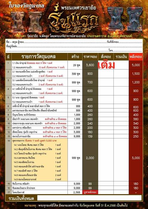 *** มีรายการเปิดจอง ดังนี้ครับ