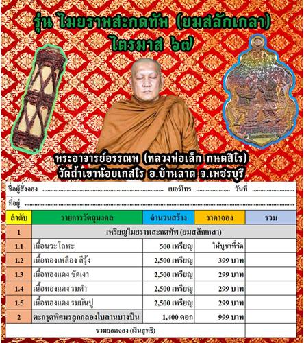 *** เปิดจอง// วัตถุมงคล รุ่น ไมยราพสะกดทัพ (ยมสลักเกลา) ไตรมาส ๖๗ พระอาจารย์อรรณพ (หลวงพ่อเล็ก กนตสีโร) วัดถ้ำเขาน้อยเกสโร อ.บ้านลาด จ.เพชรบุรี