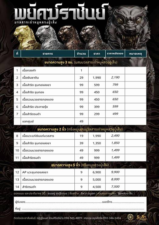 *** เปิดจอง// วัตถุมงคล พยัคฆ์ราชันย์ มวลสารเก่าหมูหลวงปู่เส็ง