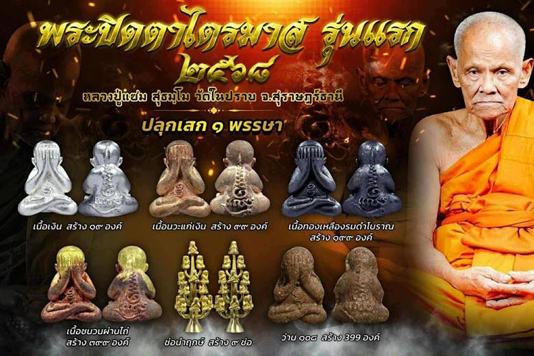 *** เปิดจอง// พระปิดตาไตรมาส รุ่นแรก หลวงปู่แซม สุธมฺโม วัดในปราบ จ.สุราษฏร์ธานี