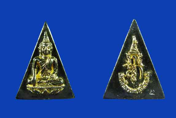 องค์ที่ ๑ เป็นสมเด็จนางพญาจิตรลดา ขนาด กว้าง 1.7 สูง 2.2 ซ.ม. กะไหล่ทอง