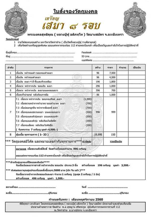 ผมเลยจองเนื้อเงินลงยารายการที่ 3 ซึ่งในใบแจ้งการจัดสร้างแจ้งว่า สร้างจำนวน 196 องค์