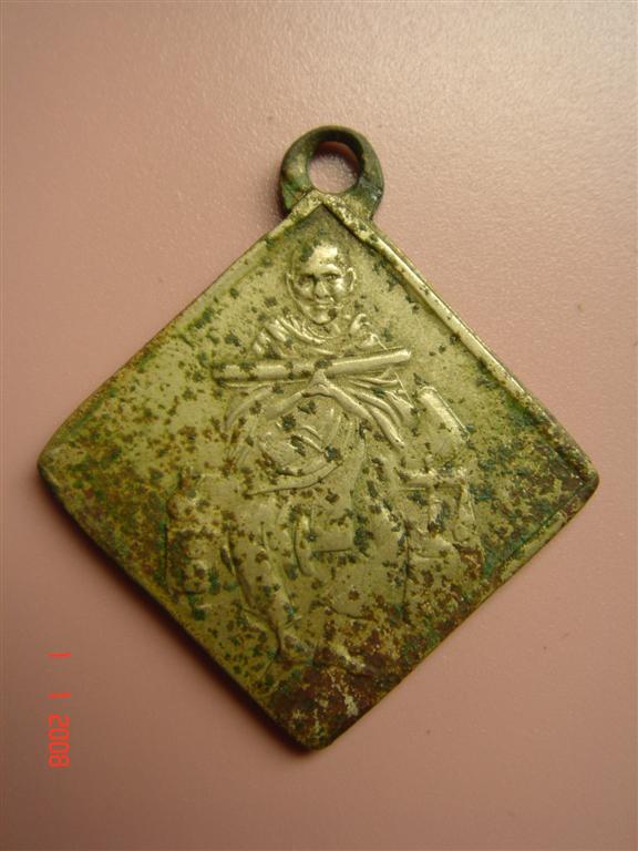 ได้มาจากคุณตาครับ จริงๆแล้วท่านจะมีห่วงห้อยเหมือนพวงกุญแจด้วย แต่ผมแกะออกมาเลี่ยมเฉพาะเหรียญ สภาพใช้งานมาหนักเลย ตอนนี้เอามาทำความสะอาดสนิมเขียวด้วยนีเวียแล้ว แต่ก็ยังไม่หมดครับ