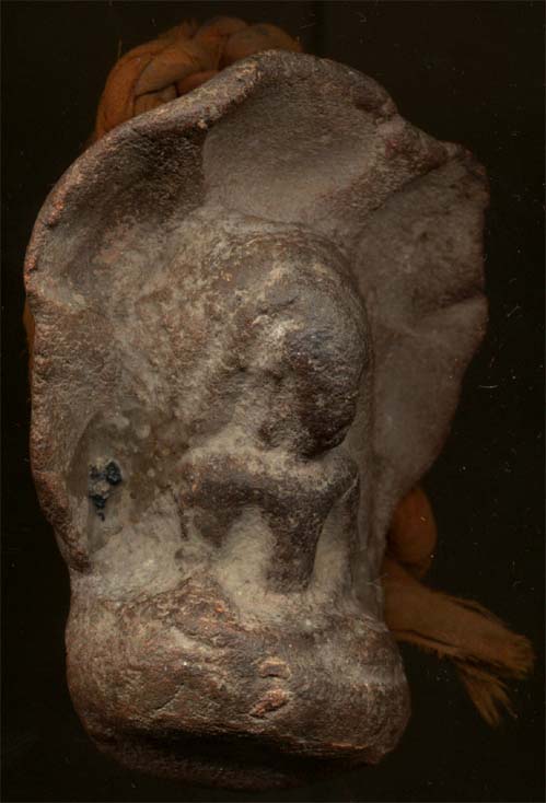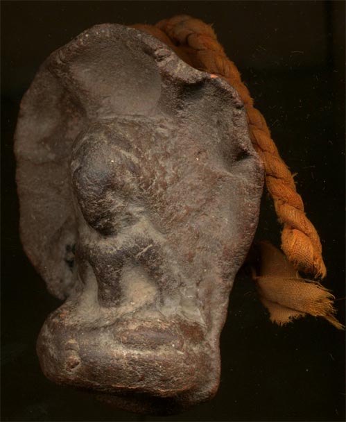 ตอนได้มาเขาบอกไว้ว่า พระองค์นี้ไว้สำหรับให้ช้างติดตัวเวลาออกศึก ไม่ทราบว่ามีเพื่อนท่านใดมีข้อมูลเกี่ยวกับพระแบบนี้บ้าง ช่วยบอกเพื่อเป็นความรู้ด้วยครับ .....ขนาดองค์พระสูงประมาณ 6.5 ซม. ปีกกว้าง 5 ซม. ด้านหลังมีการทำหูด้วยการปั้นดินเป็นเส้นแล้วมาต่อกับองค์พระ(ยังมีรอยให้เห็นการไล้ห่วงดินกับองค์พระ)...อีกอย่างมีจีวรพระติดมาด้วยแต่ผมคิดว่าน่าจะเป็นจีวรของพระยุคหลังแล้ว แถมด้านหน้าองค์พระ(ซ้าน-ขวา ยังมีรอยนำตาเทียนอีกต่างหาก)  |