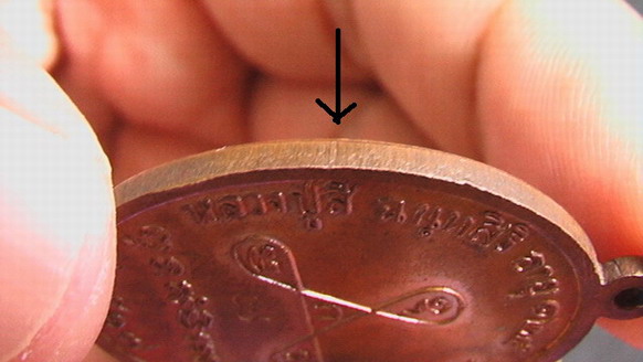 2.ขอบตัดเหรียญบริเวณคำว่า "ปู่สี" จะเป็นรอยลึกเห็นได้ชัดตามที่ลูกศรชี้ |