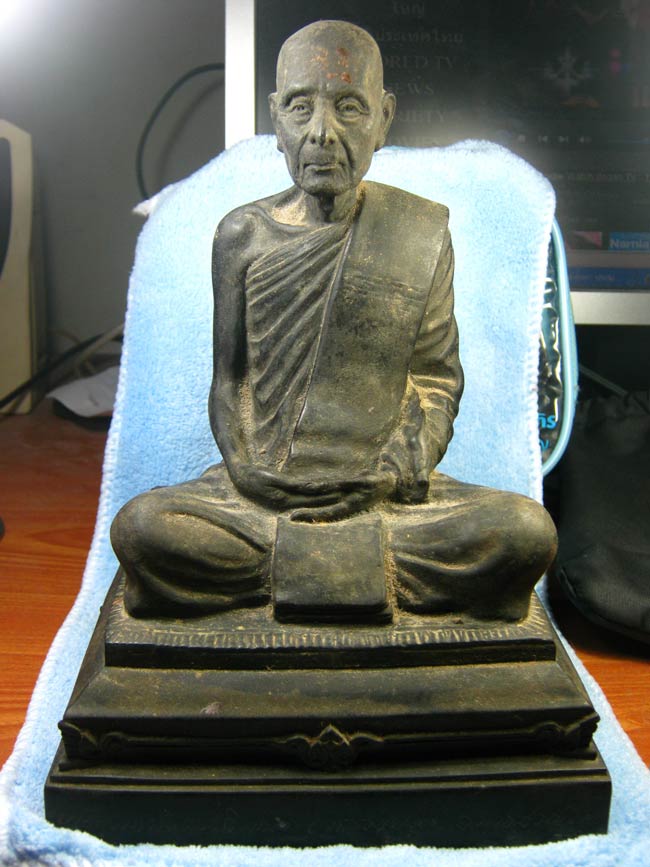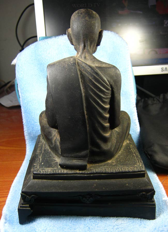องค์นี้เป็นพระบูชาครับ เป็นเนื้อโลหะ ฐานด้านหลังแตกเนื่องจากเกิดไฟไหม้ห้องพระของเจ้าของเดิม องค์นี้นิมนต์มาจากหิ้งเลยครับ