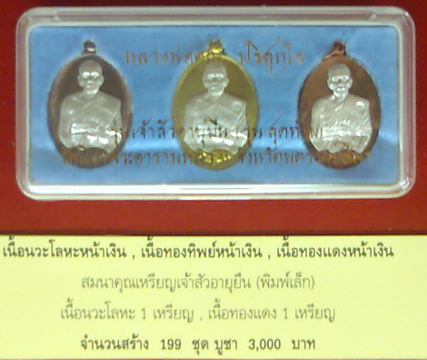 4.เนื้อนวะโลหะหน้าเงิน,เนื้อทองทิพย์หน้าเงิน,เนื้อทองแดงหน้าเงิน จำนวนสร้าง 199 ชุด บูชา 3,000 บาท
