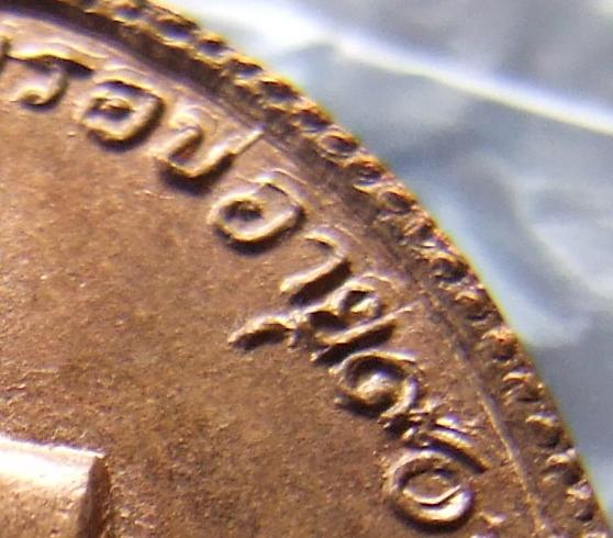 ดูตำหนิที่บริเวณฐานรองนั่ง และเส้นแตกบนผิวเหรียญต่อ