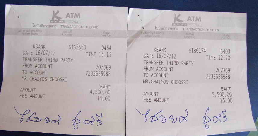 โอนครั้ง2 จำนวน 4,500บาท นายไชยยศ ชูศรี โทรบอกว่าส่งเหรียญกษาปณ์ให้แล้ว ได้โอนครั้ง2ไปให้ รวมเป็นเงิน10,000บาท หลังรับของแล้วจะโอนเงินให้10,000 บาท รวมเป็นเงิน20,000บาท วันพุธที่18/7/2555 เวลา15.00น. โทรไปถาม นายไชยยศ ชูศรี ว่าของไม่ได้ส่งมาให้ใช้ใหม นายไชยยศ ชูศรี ปิดโทรศัพท์เลยครับ และติดต่อไม่ได้เลยครับ