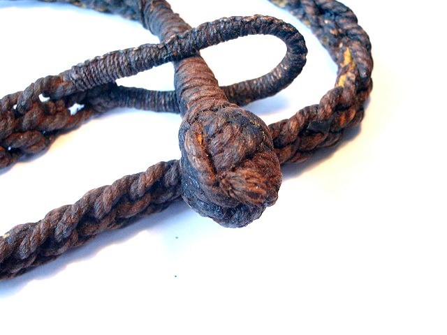 เป็นเชือกคาดของหลวงพ่อสายวัดเสือ ท่าวุ้ง ลพบุรี ทำจากเชือกป่านถักทายางไม้ยางรักเก่ามาก ท่านทำน้อยมาครับ เป็นเกจิ อาจารย์ที่ผมนับถืบเลื่อมใสตลอดมา เหรีญรุ่น 1 ของท่านออก ปี2462 อีก 20 ปีต่อมาท่านจึงยอมออกเหรียญรุ่น 2 ที่ผมเคยลงให้ชมไปแล้ว เชือกเส้นนี้เดิมเป็นของเซียนพระแถวพะยุหคีรีและมาอยู่ที่พี่เขยผมและท่านได้มอบให้ผมอีกที ด้วยว่าผมมาแต่งงานกับแฟนคน ท่าวุ้ง
