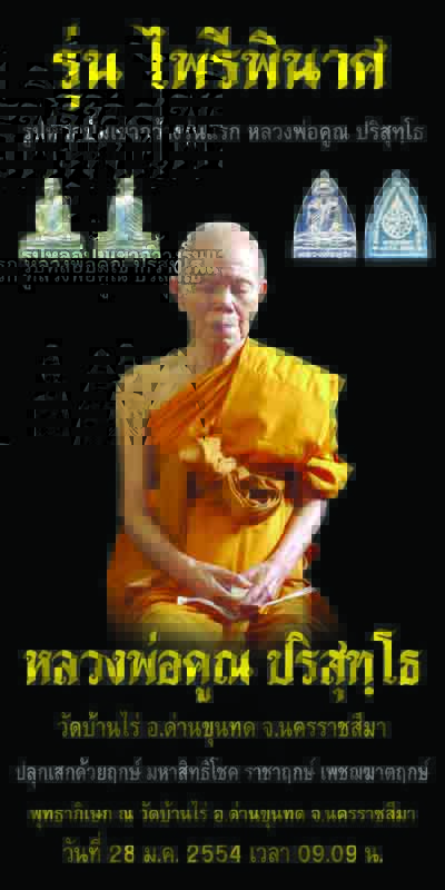 กำหนดการแรก พระเดชพระคุณพระเทพวิทยาคม หรือหลวงพ่อคูณ มีเมตตาปลุกเษกวัตถุมงคลให้เป็นกรณีพิเศษ ตามฤกษ อันเป็นมงคล ที่วัดบ้านไร่ |