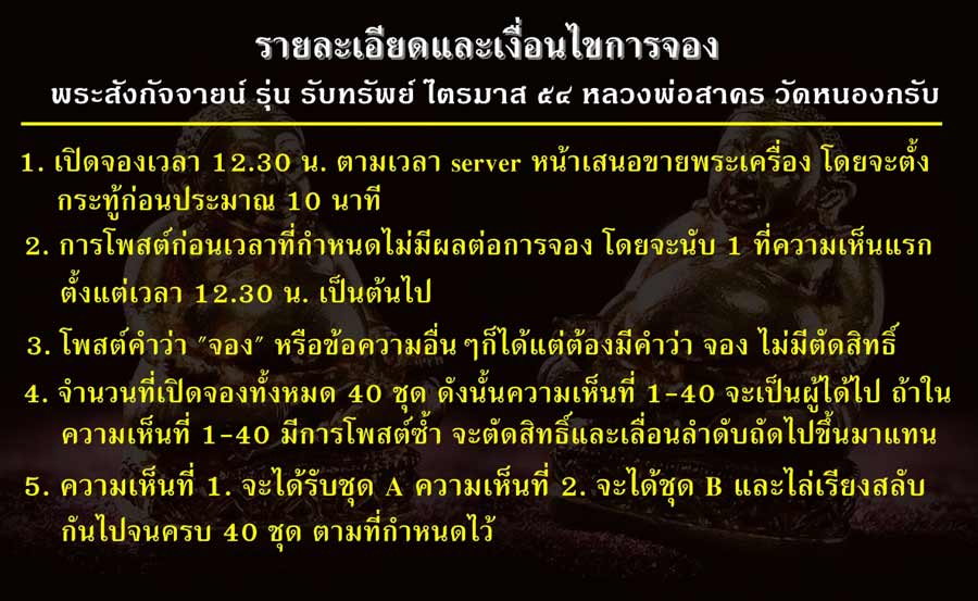 5. ในความเห็นที่ 1-40 ถ้ามีการโพสต์ซ้ำ จะตัดสิทธิ์และเลื่อนลำดับถัดไปมาแทน