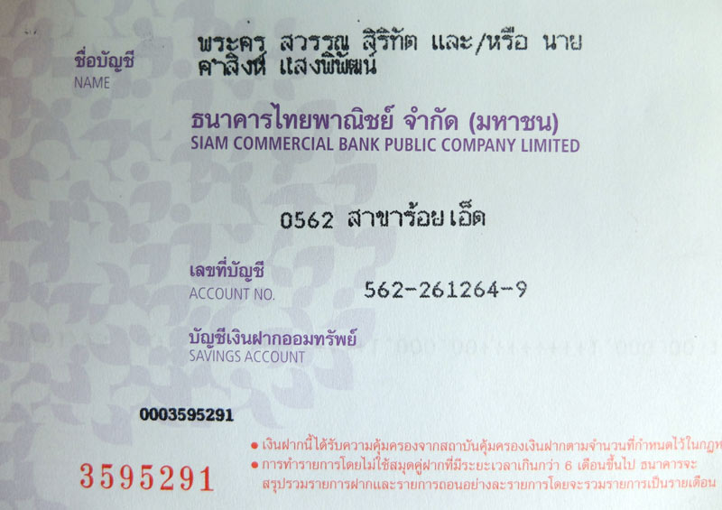 ชื่อบัญชี พระครู สุวรรณ สิริทัต และ/หรือ นายคำสิงห์ แสงวิพัฒน์