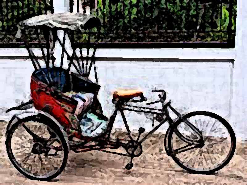 .มีสามล้อคันหนึ่ง ในเบาะผู้โดยสารมีหลวงตา นั่งคู่กับเด็กวัด..