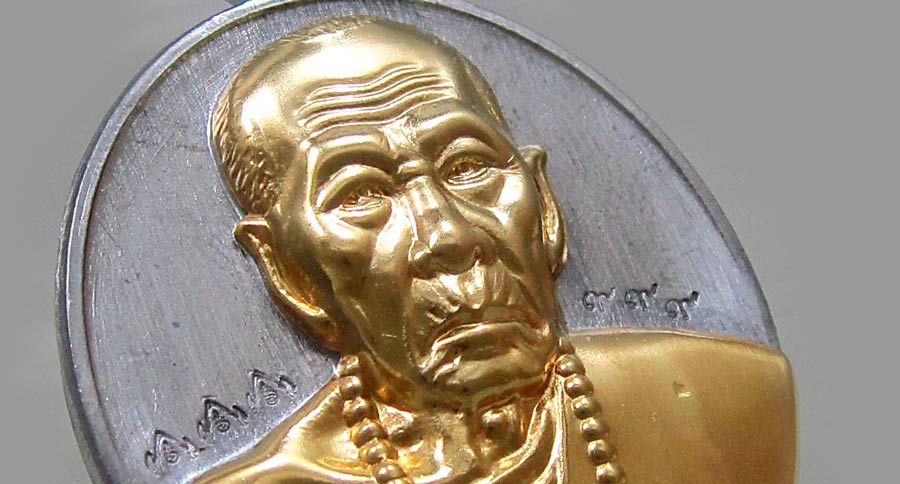 ..เนื้อ ตะกั่วหน้าทองระฆัง หลังเรียบจารมือ.. มาให้ผมหนึ่งคู่ เหรียญรูปไข่กับเหรียญกลม..