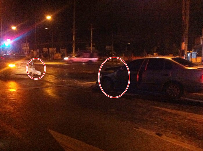 อาทิตย์ที่แล้ว น้องรู้จักรที่สระแก้วโทรมาบอกว่าโดนรถชนท้าย เรื่องมีอยู่ว่า น้องเขาจอดรถติดไฟแดงที่เมืองสระแก้วประมาณ 5 ทุ่ม ก็มีรถเก๋งวิ่งมาชนท้ายอย่างแรงจนรถไถลไปอยู่กลางแยกไฟแดง คนที่มาชนท้ายบอกมองไม่เห็นรถและไม่เห็นไฟแดงเลยชน อาการก็บาดเจ็บโดนกระจกหน้าบาด ส่วนน้องก้ไม่เป็นอะไรเพราะคาดเข็มขัดด้วย |