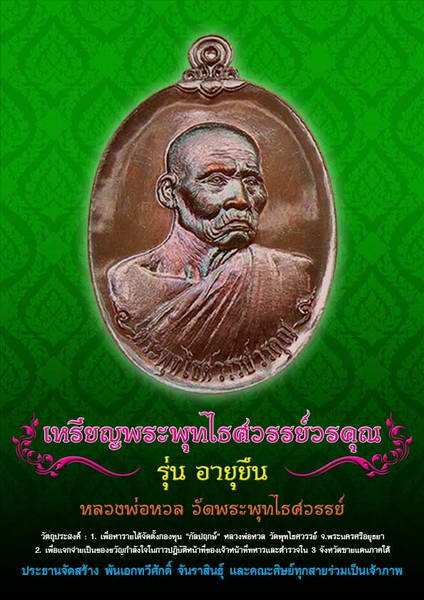 ขอเชิญร่วมจองเหรียญ อายุยืน (หลวงพ่อหวล)พระพุทไธศวรรย์วรคุณ วัดพุทไธศวรรย์