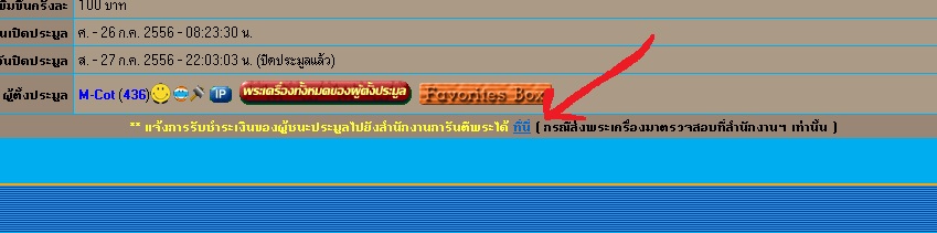 พอดีผมจัดส่งพระไปออกบัตร หลังจากออกบัตรแล้วก็แจ้งทางผู้ชนะประมูลว่าบัตรออกแล้ว เมื่อผู้ชนะประมูลโอนเงินมา ผมก็เข้าไปกดแจ้งที่หน้ากระทู้ตามไฟล์ภาพครับ และทางระบบแจ้งว่า " ท่านไม่สามารถแจ้งชำระเงินได้ เนื่องจากเกิน 15วัน"