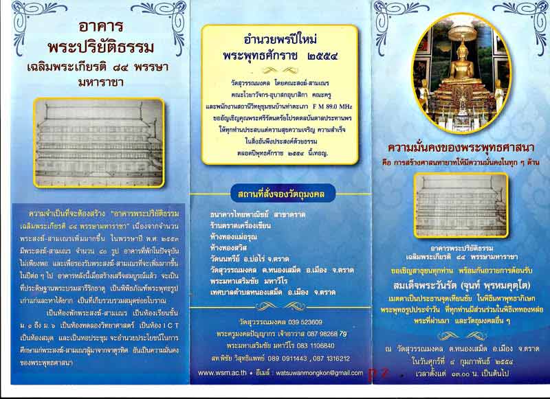 หยดน้ำรุ่นแรก หลวงปู่บัว วัดเกาะตะเคียน จ.ตราด เพื่อนำจตุปัจจัยสมทบในการก่อสร้าง "อาคารพระปริยัติธรรมเฉิลมพระเกียรติ ๘๕ พรรษามหาราชา" ซึ่งจะดำเนินการก่อสร้างในปีอันเป็นมหามงคลนี้ น้อมเกล้าน้อมกระหม่อมถวายเป็นพระราชกุศลแด่พระบาทสมเด็จพระเจ้าอยู่หัว ผู้ทรงพระคุณธรรมอันประเสริฐ เจริญพระชนมพรรษา ๘๔ พรรษา ในปีพระพุทธศักราช ๒๕๕๔ รูปงานเททองหล่อพระประจำวันขนาดเท่าองค์จริง ๗ องค์ เมื่อวันที่ ๒ ธันวาคม ๒๕๕๓ มีจำนวนการสร้างที่ชัดเจน มีโค็ด ตอกเลข วัตถุประสงค์ดี เพื่อการกุศลครับสมเด็จพระวันรัต (จุนท์ พุรหมคุตุโต)เมตตาเป็นประธานจุดเทียนชัยในพิธีมหาพุทธาภิเษก (ออกที่วัด สุวรรณมงคล) ปลุกเสกเดี่ยว โดยหลวงปู่ บัว ครับเจตนาดี พิธีดี พิธีให่ญ มากๆ ส่วนสูง3.3เซ็นครับ