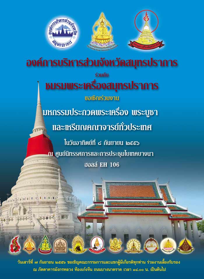 วันที่ 8 ก.ย.2556 องค์การบริหารส่วนจังหวัดสมุทรปราการ และชมรมพระเครื่องสมุทรปราการ ได้จัดการประกวดพระเครื่อง พระบูชา ณ ไบเทคบางนา