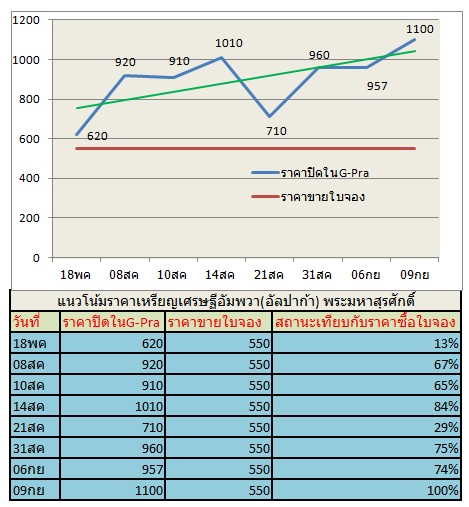 2. เหนือราคาซื้อใบจองโดยเฉลี่ยประมาณ 350 บาท. (65%)