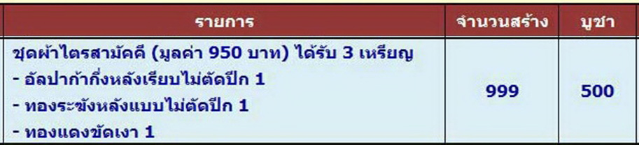 ชุดผ้าไตรทำบุญ 500 บาท ได้รับพระ 3 รายการ ประกอบด้วย