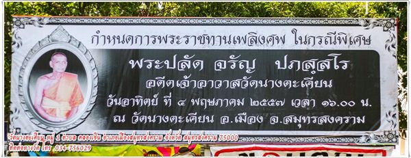 | หัวข้อกระทู้ : แจ้งข่าว กำหนดการ พระราชทานเพลิงศพ พระปลัด จรัญ ปภสสโร อดีตเจ้าอาวาส วัดนางตะเคียน สมุทรสงคราม |