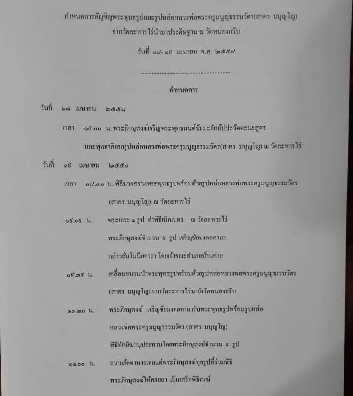 | หัวข้อกระทู้ : ขอเรียนเชิญศิษยานุศิษย์ผู้เคารพรักศรัทธาร่วมพิธีอันเชิญรูปเหมือนหลวงพ่อสาคร กลับวัดหนองกรับ |