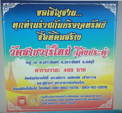 เรียนเชิญผู้ใจบุญทุกๆท่านนะครับ ติดต่อเจ้าอาวาส หรือ ผู้ช่วย ตามหมายเลข ในโปสเตอร์ เลยครับ หรือจะติดดต่อมาทางผมก็ได้ครับ ผมจะช่วยประสานงานให้ครับ |
