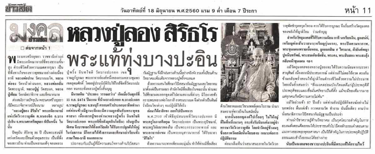 หลวงปู่ลอง สิริธโร พระแท้ทุ่งบางปะอิน