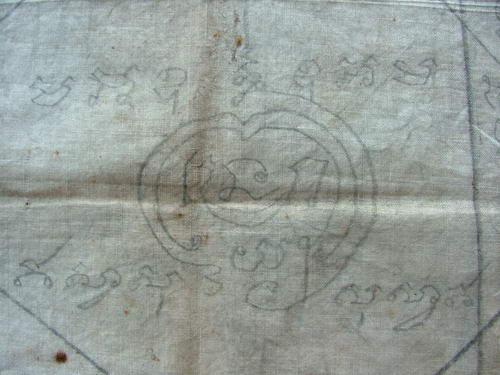 ผ้ายันต์เก่าที่ลงด้วยลายมือ ที่น่าสนใจคือการหาประวัติเป็นเกจิท่านใด ที่ไหน ผมมักนำไปแลกเปลี่ยนความรู้กับเพื่อน ทำให้เราทราบยันต์ประจำตัวของเกจิฯแต่ละท่าน โดยเฉพาะที่ลงด้วยลายมือลายเส้นกับการจารจะเป็นไปในแนวทางเดียวกัน แต่จากผ้ายันต์จะชัดเจนและง่ายต่อการจดจำครับ