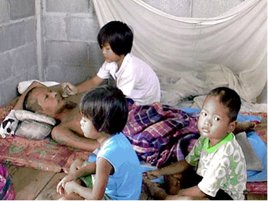 พูดไม่ได้นอนซมอยู่ภายในบ้านสภาพเก่าๆ