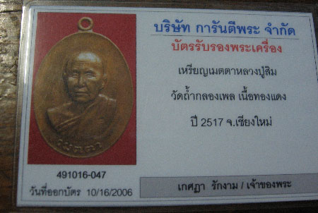 คือวันก่อนประมูลเหรียญเมตตาได้ เจ้าของเดิมก็ส่งมาให้พร้อมบัตรรับรองที่ทาง สนง.ออกให้แต่เนื่องจากว่าเจ้าของเดิมส่งพระมาให้สนง.ออกบัตรรับรองให้ทาง ปณ.เพราะอยู่ต่างจังหวัด เลยไม่ได้เช็คเรื่องรายละเอียดบนบัตรก่อนว่าถูกวัดหรือไม่ พอผมได้มาถึงรู้ ก็เลยอยากเรียนถามว่าในกรณีนี้หากผมต้องการจะออกบัตรใหม่จะต้องเสียอีก50บาทหรือป่าวครับ และอีกนิดนึงครับเรื่องของวันที่บนบัตรดูแปลกๆไม่ทราบว่าเป็น เดือน / วัน / ปี หรือป่าวอ่ะครับ งงๆซึ่งบัตรรับรองบางใบที่ผมได้มาพร้อมพระองค์อื่นจะเป้น วัน/เดือน/ปี และเป็นปี พ.ศ. แต่ใบทีพิมพ์ชื่อวัดผิดจะเป็น ค.ศ. ซึ่งโดยความคิดเห็นส่วนตัวผมว่าน่าจะใช้เป็น พ.ศ.มากกว่านะครับ ขอบคุณครับ  |