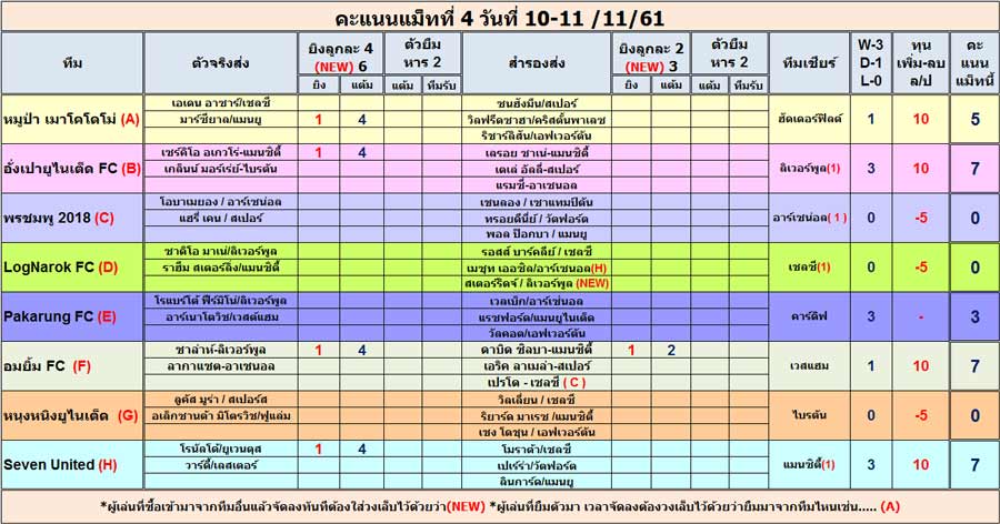 ผ่านไปแล้วครับ แมทที่ 4 เมื่อค่ำคืนที่ผ่านมา
