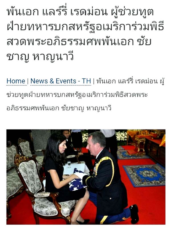 เมื่อวันที่ 4 กุมภาพันธ์ที่ผ่านมา กลิน ที. เดวีส์ เอกอัครราชทูตสหรัฐอเมริกาประจำประเทศไทย ออกแถลงการณ์แสดงความเสียใจต่อการจากไปของบุคคลสำคัญ ในครอบครัวคนไทยครอบครัวหนึ่ง ซึ่งน้อยคนนักจะรู้ว่ามีเหตุสืบเนื่องจากอะไร บุคคลคนนั้นคือ พันเอกชัยชาญ หาญนาวี
