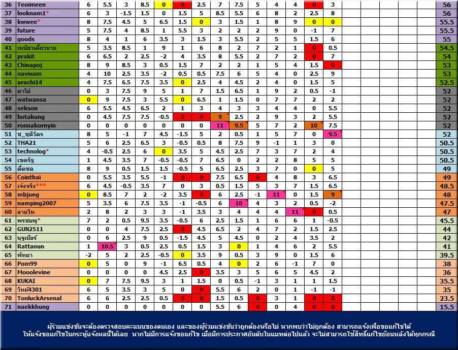 ผ่านสัปดาห์ที่ 14 ไปแล้วครับ คะแนนท่านใดเป็นอย่างไรดูจากตารางได้เลยครับ