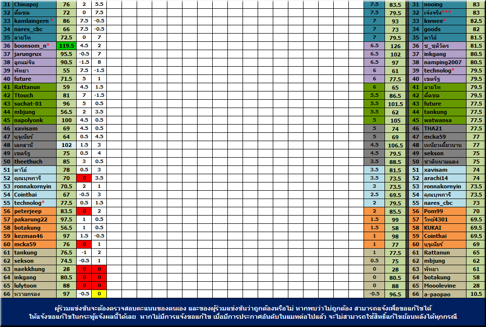 ****สมาชิกผู้ร่วมกิจกรรมทุกท่าน ต้องเป็นผู้ร่วมตรวจสอบคะแนนต่างๆด้วยนะครับ ทุกคะแนนหากมีการประกาศผลในสัปดาห์ต่อไปแล้ว