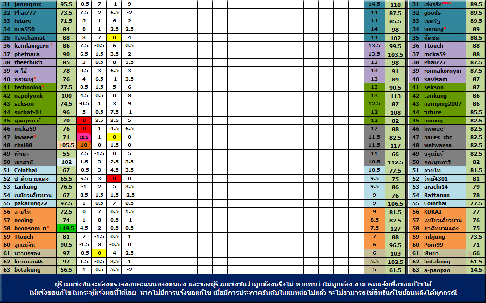 ****สมาชิกผู้ร่วมกิจกรรมทุกท่าน ต้องเป็นผู้ร่วมตรวจสอบคะแนนต่างๆด้วยนะครับ ทุกคะแนนหากมีการประกาศผลในสัปดาห์ต่อไปแล้ว