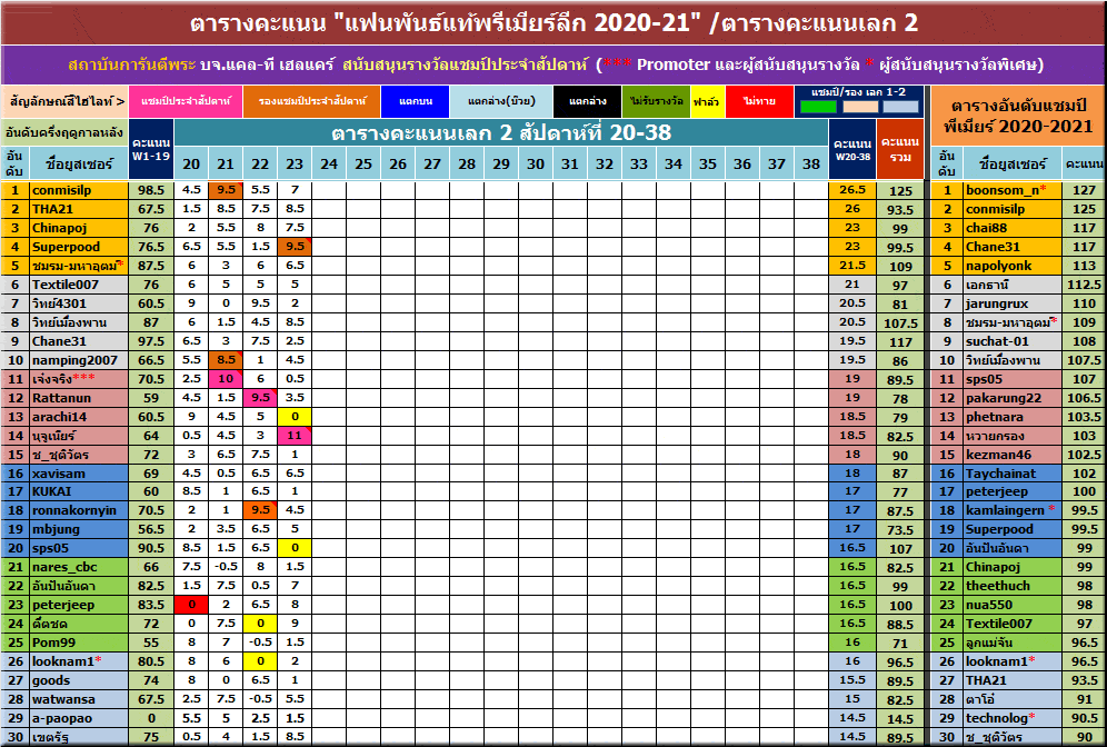 รายงานการแข่งขันหลังจบสัปดาห์ที่ 23 ครับ