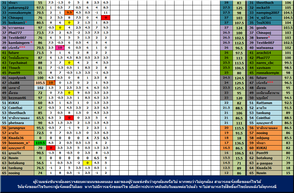 ****สมาชิกผู้ร่วมกิจกรรมทุกท่าน ต้องเป็นผู้ร่วมตรวจสอบคะแนนต่างๆด้วยนะครับ ทุกคะแนนหากมีการประกาศผลในสัปดาห์ต่อไปแล้ว