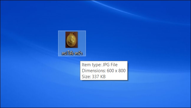 ตัวอย่างคือจะลดขนาดไฟล์เหรียญหลวงปู่โต๊ะจาก 600 x 800 Pixel ขนาดไฟล์ 337 KBโดยจะคงขนาด Pixel นี้ไว้ แต่จะลดขนาดไฟล์ให้ไม่เกิน 80 KB