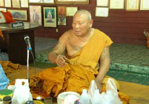 ท่านเจ้าอาวาส ชื่อ พระครูไพศาลนวกิจ (สงวน อานนโท)ท่านนอนอาพาธด้วยโรคอมพาต แต่ตอนนี้เพิ่งคอยยังชั่วเริ่มรุกเดินได้ ท่านบอกว่าได้ตำราไทยมาจากพระไตรปิกฎ รักษาหมอแผนปัจจุบันมาหลายหมอแล้วไม่หาย เลยคิดว่าถ้าจะตายก็ขอตายอยู่กับวัดนี่แหล่ะ แถมท่านเพิ่งทำ บายพาสหัวใจมาอีกด้วย |