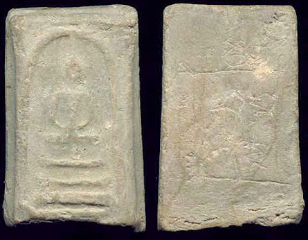 พระแท้ด้านหลังรอยเหล็กจารจะเขียนเป็นเส้นเล็ก แต่จะหวัด ๆ ไม่ปราณีบรรจง ผิดกับด้านหลังของเก๊ จะบรรจงเขียนซะสวยงาม เพื่อดึงดูดความสนใจ และที่สำคัญที่ร่องอักขระจารจะต้องมีคราบกรุ หรือขี้กรุเกาะติดให้เห็นบ้าง ส่วนของเก๊มักจะลืมถึงจุดนี้ มักจะเน้นคราบที่ด้านหน้าเท่านั้น