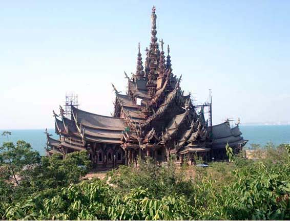 สถาปัตยกรรมที่ทำด้วยไม้แกะสลักทั้งหลัง
