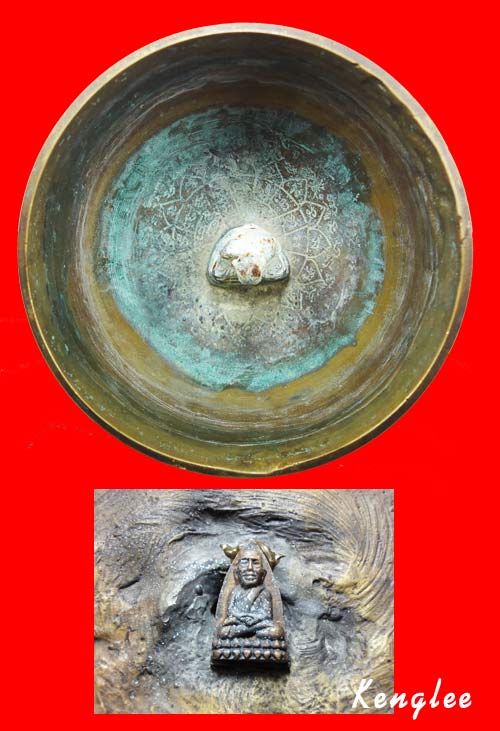 ขันบาตรน้ำมนต์ วัดบางนอน จ.ระนอง ไม่ทราบปีที่จัดสร้าง ที่ฐานรูปหล่อก้นขัน สลัก หลวงพ่อทวด วัดบางนอน จ.ระนอง น้ำหนักประมาณ 2.2 กิโลกรัม