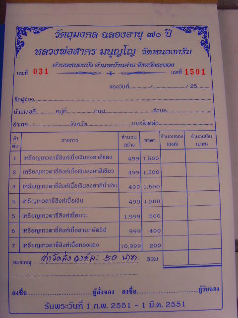 เรียน เพื่อนสมาชิก G-PRA ที่นับถือ ฝ่ายประชาสัมพันธ์วัดหนองกรับ ขอเชิญชวนท่านสมาชิกที่นับถือ ร่วมทอดผ้าป่าสามัคคี ในวันที่ 3 ก.พ. 2551 ซึ่งตรงกับวันอาทิตย์ มีรายการพิเศษหลายรายการ เช่น ประมูลเหรียญเจริญพรบน เนื้อทองคำ ประมูลเหรียญเจริญพรบนเลข ตอง และทำบุญทอดผ้าป่ากองละ 200 บาท รับเหรียญเทวดาขี่สิงห์ เนื้อทองแดง สวยกร๊บ 1 องค์ จึงเรียบมาเพื่อทราบ |